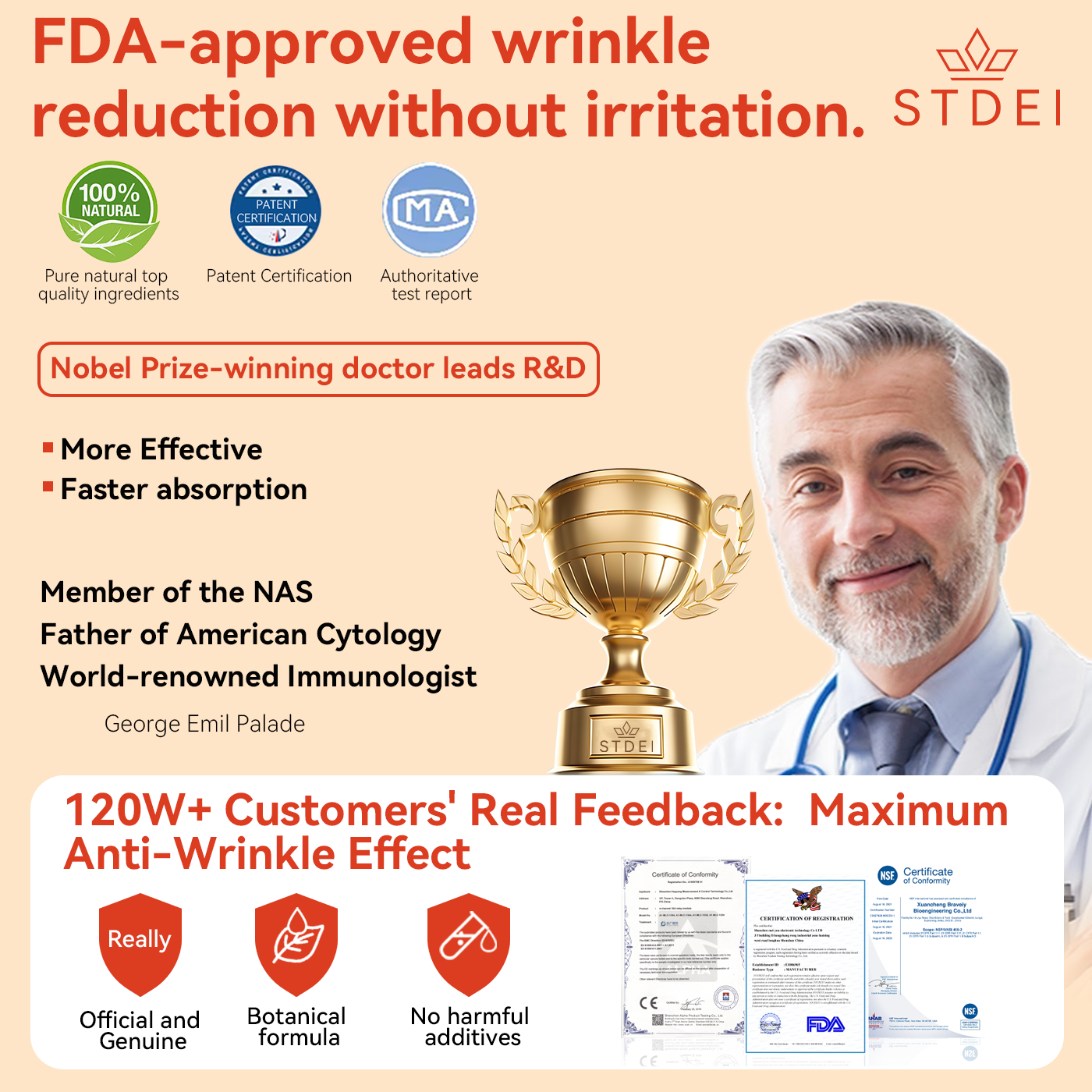 Badania kliniczne udowodniły, że stosowanie STDIE™ Magiczny luksusowy olejek do ciała może napiąć luźną skórę u 98,5% użytkowników w ciągu 3 tygodni. Te ulepszenia obejmują przywrócenie elastyczności skóry, ujędrnienie luźnej skóry, wyrównanie kolorytu skóry, zwiększenie blasku i zmniejszenie wielkości porów, pomagając skórze osiągnąć zdrowy stan.